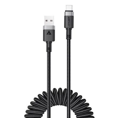 Cable Acefast C14-04 USB-A – USB-C Cable Spring 480Mb/s 3A 1.2m spring charging data cable Black