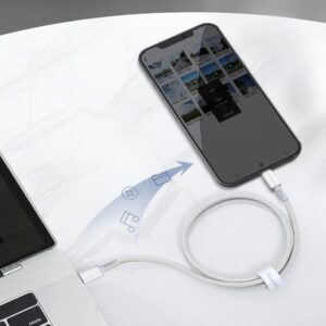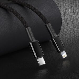 Very durable USB Type C – Lightning cable with a nylon braid. It is made of a material that is exceptionally durable and wear-resistant. The plugs are finished with reinforced housings and rubber caps to minimize the risk of cable breaks in these places. It is perfect for transferring data and charging your phone. It can withstand a load of up to 20 W and is suitable for fast Power Delivery charging of the latest iPhones.
