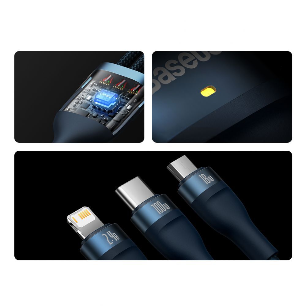 Baseus Flash Series II cable USB – USB Type C / Lightning / micro USB 100 W 1.2 m blue (CASS030003)