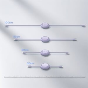The Baseus Free2Pull cable roll-up design is a great solution for those who value order and convenience. It allows for smooth rolling and unrolling of the cable – just pull one side or both sides to achieve the right length. The cable has four length settings: 100 cm, 83 cm, 60 cm and 35 cm, allowing for flexible adjustment to different needs. The built-in double turbine mechanism ensures smoothness for over 50,000 cycles, meaning the cable is not only practical but also durable.