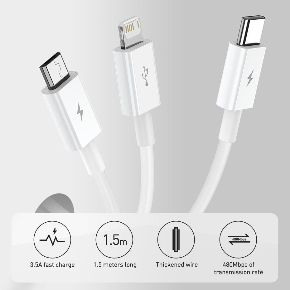 Baseus Superior 3in1 USB cable – Lightning / USB Type C / micro USB (charging 3.5 A / data transfer 480 Mbps) 1.5 m