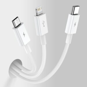 USB cable with 3 plugs: USB Type C, micro USB and Lightning. A single cable that allows you to charge any device equipped with the aforementioned connectors and transfer data, eg to and from a computer to a phone. Ideal for people with several devices from different manufacturers.