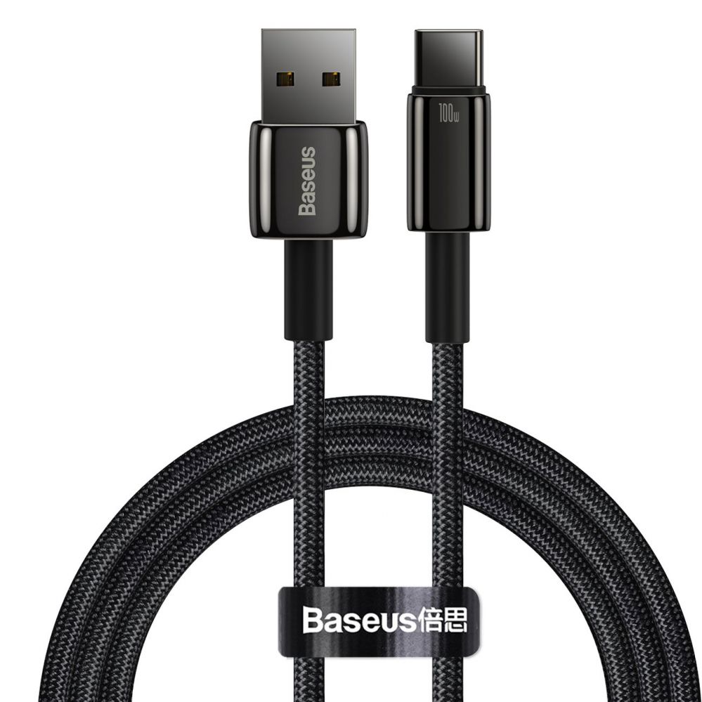 Baseus Tungsten Gold cable USB-A – USB-C 480Mb/s 100W 1m black (CAWJ000001)