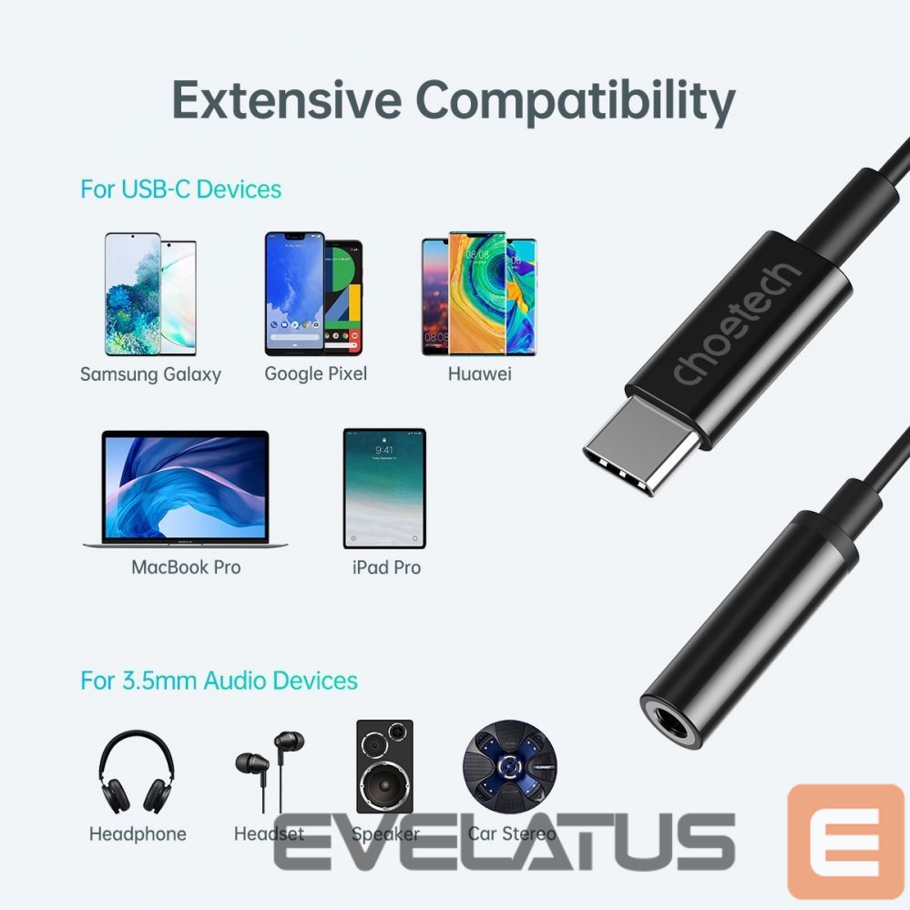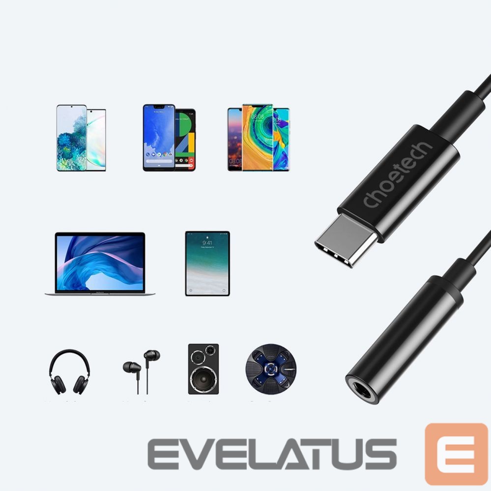 The Choetech AUX003 adapter is an ideal solution for a wide range of devices. It will ensure a reliable connection of a modern smartphone, laptop or tablet with a USB-C port with any audio device that has a 3.5mm jack socket.