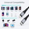 - Ensures long-term use without fear of damage. It has a durable construction and a nylon braid that has undergone over 10,000 bending cycles.