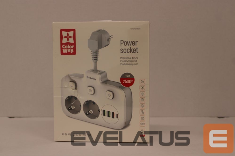 Cable ColorWay SALE OUT. CW-CHE24PDW Power Socket: 2xEU plugs/3xUSB-A/1xUSB-C White 2.5M | Power Socket | CW-CHE24PDW | DAMAGED PACKAGING