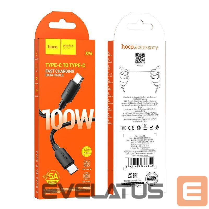 Cable Hoco Cable USB C to USB C Hoco PD 6A 100W 1 m X96 black