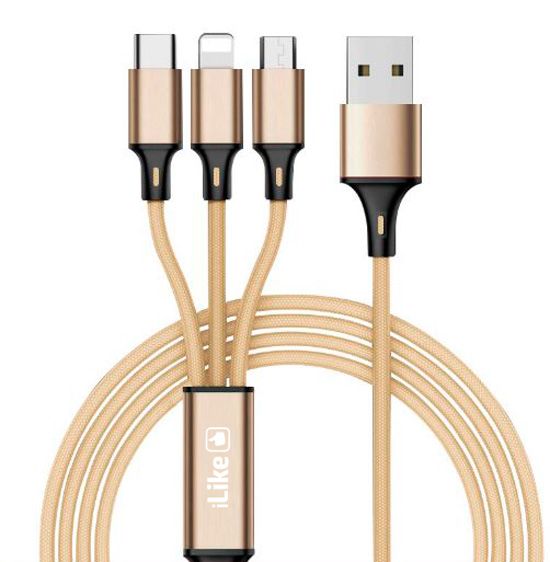 Cable iLike Charging Cable 3 in 1 CCI02 Gold