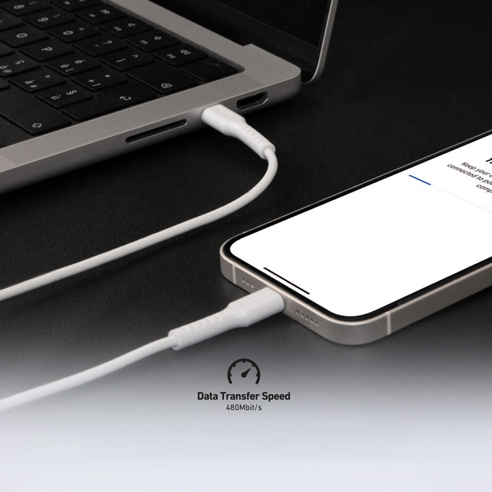 The white color and modern look make the cable fit perfectly into any environment, emphasizing its functionality and style.