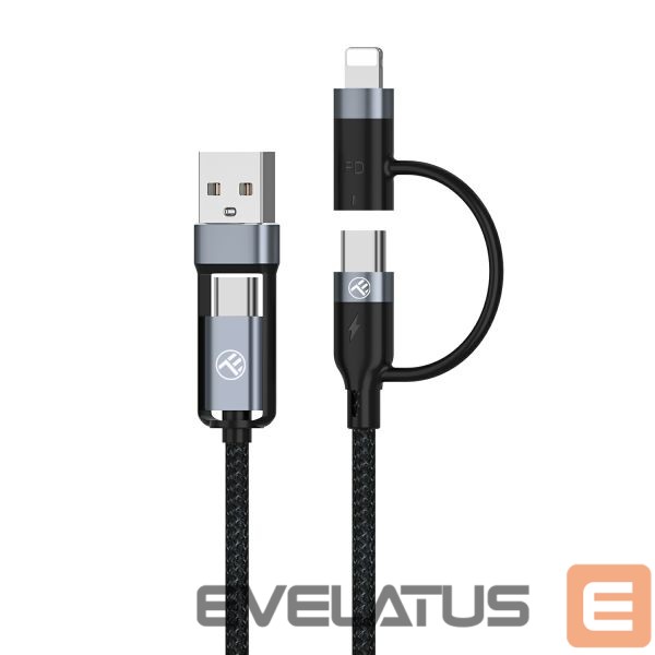 Cable Tellur 4in1 Cable USB/Type-C to Type-C (PD65W)/Lightning (PD20W) 1m black