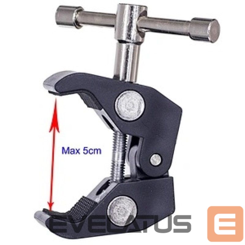 Are you looking for a solid and versatile clamping bracket for mounting accessories? This professional bracket is the perfect solution! Made of high-quality metal, it provides unparalleled stability and safety of use. With a jaw width of up to 50 mm and threaded holes of 1/4 and 3/8 inch, you can easily mount various accessories. The quick-release system guarantees convenience of use, saving you time.