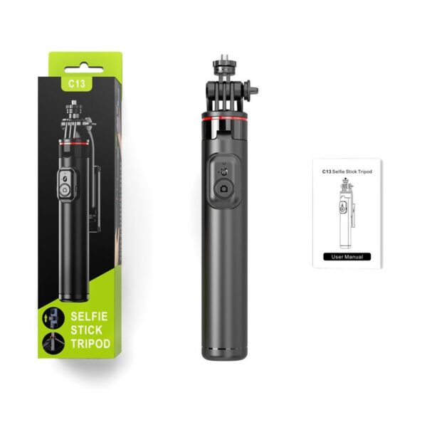With a 1/4 inch thread, the WC1Y3S telescopic selfie stick is compatible with a wide range of devices. You can connect digital cameras, sports cameras, ring lights, and dual lights to it.