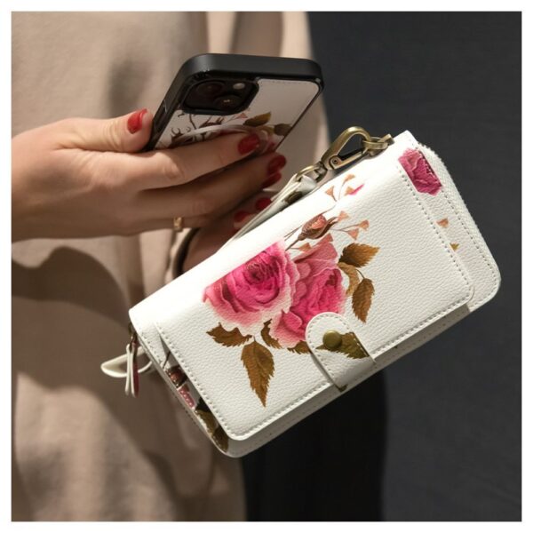 Case universal pocket Evelatus Universal Wallet Zipper Design Flower White