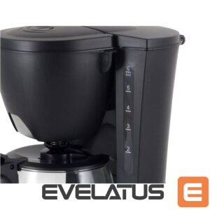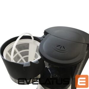 Drip coffee maker with a 600ml glass pitcher that is suitable for 4 to 6 cups of coffee, a removable and washable filter and a waterlevel indicator. The appliance is equipped with an anti-drop feature and a keepwarm plate to keep coffee warm.