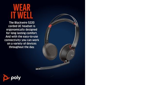 HP Poly Blackwire 5220 Stereo USB-C Headset +3.5mm Plug +USB-C/A Adapter