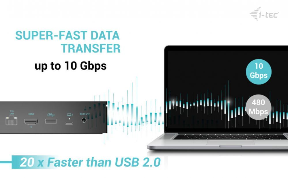 I-TEC Universal 5x 4K Display DS 5x 4K 2x DP 3x HDMI 1x 2.5GLAN 2x USB-C Gen.2 3x USB 3.2 Gen.2 1x Audio/Mic Jack PD 100W KL