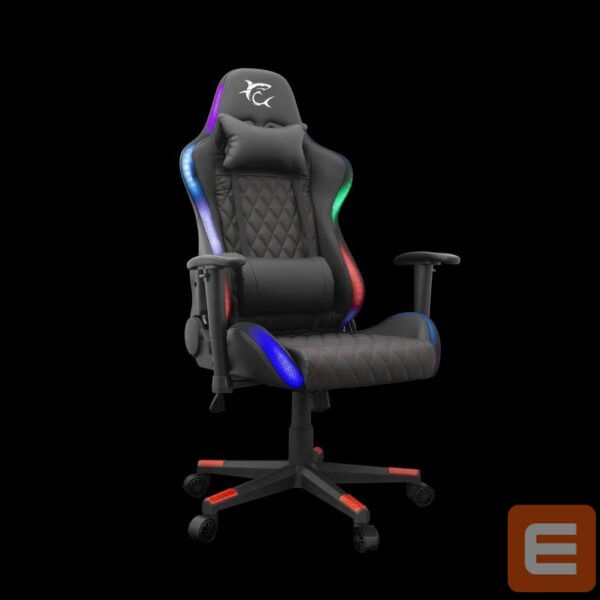 White Shark THUNDERBOLT is a gaming chair with LED illumination integrated into the lateral edge of the chair. Different illumination effects and colors can be set by the IR controller. An external USB power bank is required for LED to work (NOT INCLUDED IN PACKAGE!). The backrest angle can be modified with a small handle on the right side of the chair. Sitting height can also be modified. 2D hand rest.