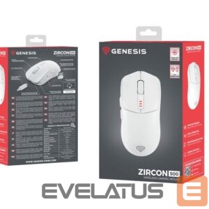 Computer mouse Genesis Zircon 500 | Wireless/Wired | Gaming Mouse | 2.4 GHz, Bluetooth, USB | White
