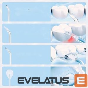 The set includes four tips that allow the irrigator to be used by several people or rotation of tips depending on hygiene needs.