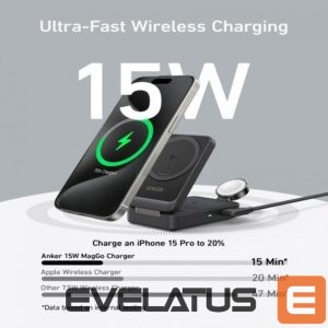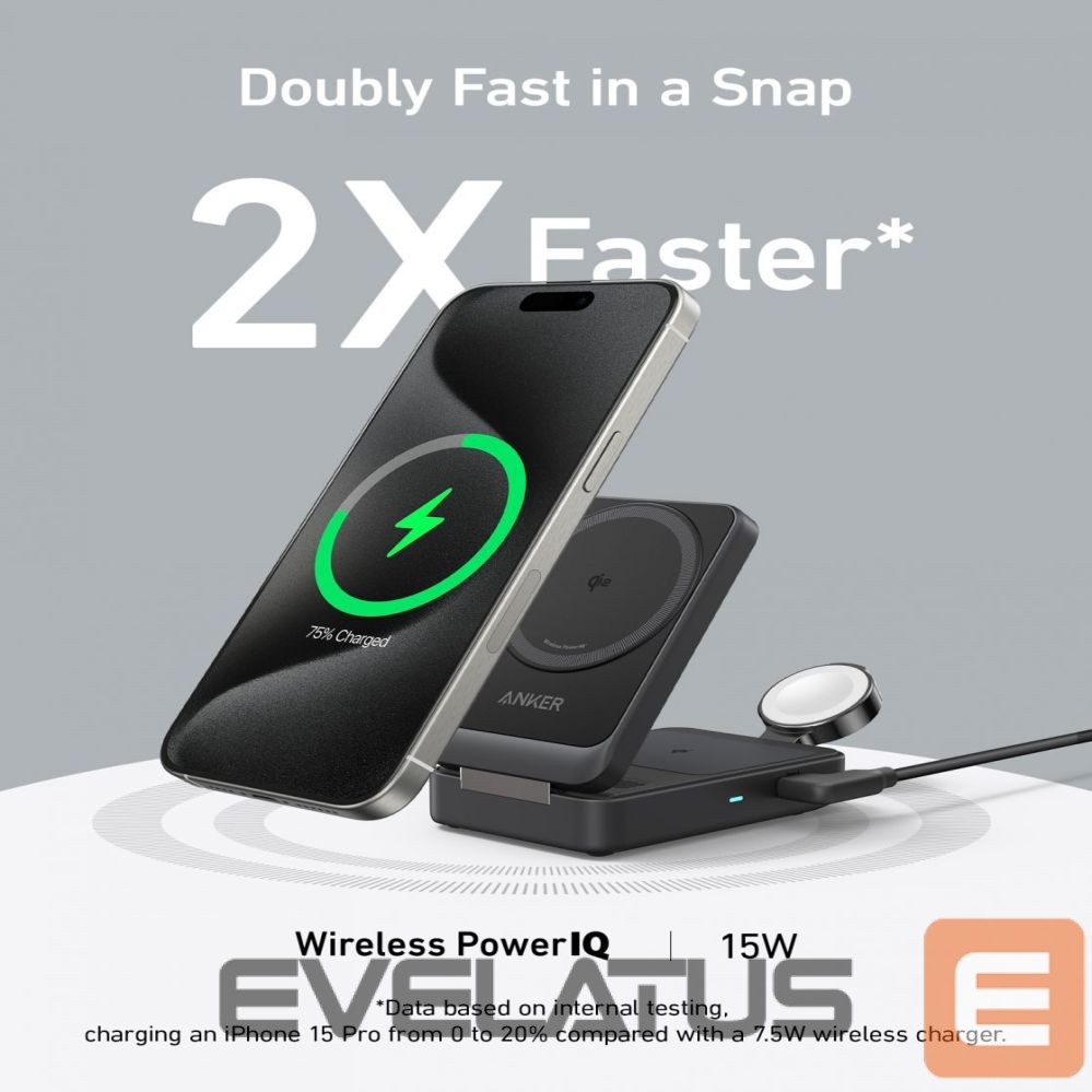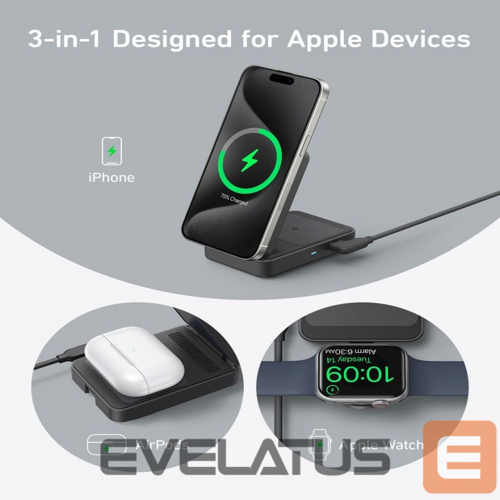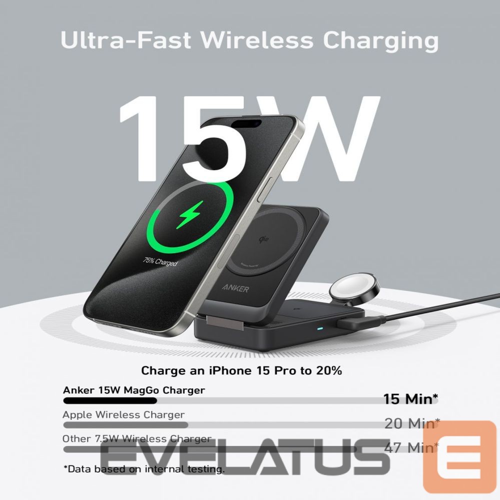 Controller Anker MagGo Magnetic Wireless Charger (Qi 2.0, 15W), Foldable 3-in-1 with Charger Bundle, Black |
