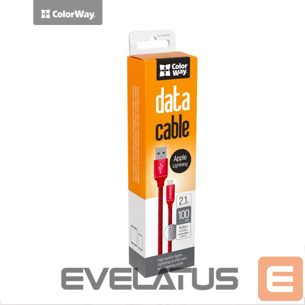 Controller ColorWay Data Cable Apple Lightning Charging cable, Fast and safe charging; Stable data transmission, Red, 1 m