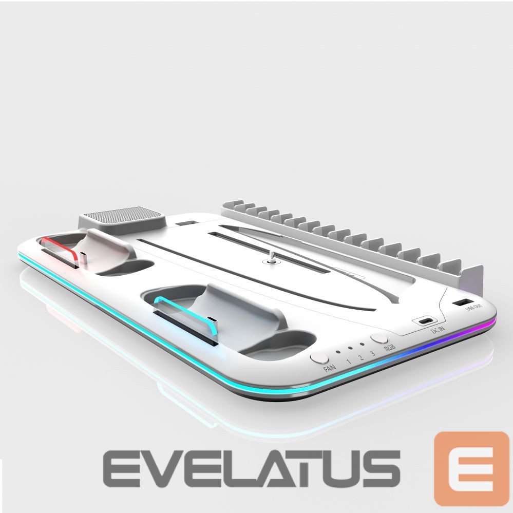 Controller iLike DZ504 Slim Multi Dock Station for Play Station 5 PS5 Controllers with Cooling fas & RGB Black