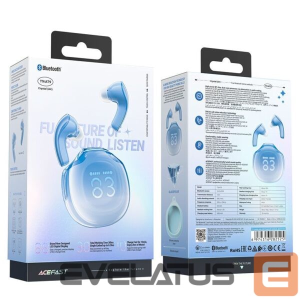 Acefast T9 Bluetooth 5.3 wireless headphones with display, in-ear, IPX4 certified – blue