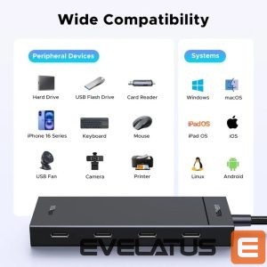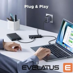 The 5-port USB-C hub supports data transfer speeds of up to 10Gbps from 4 of the ports, while the 5th offers 100W PD charging. The transfer speed is fast enough to transfer a 20GB file in just 16.4 seconds, significantly reducing your waiting time.
