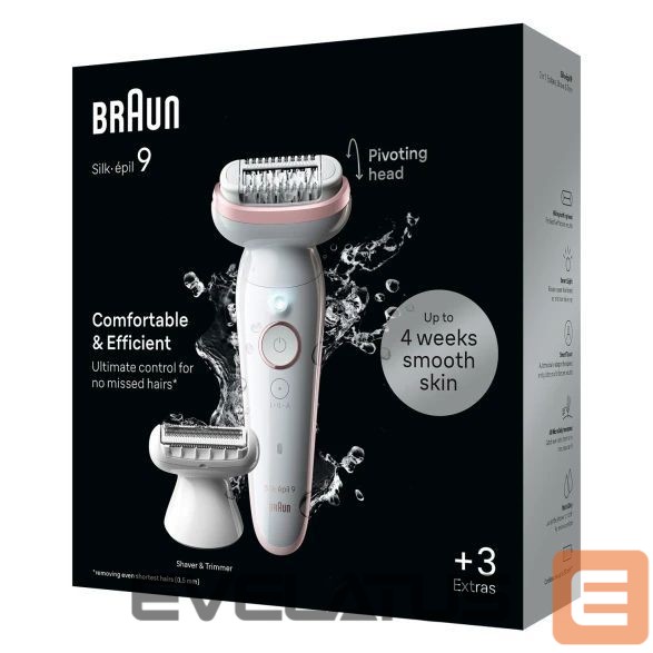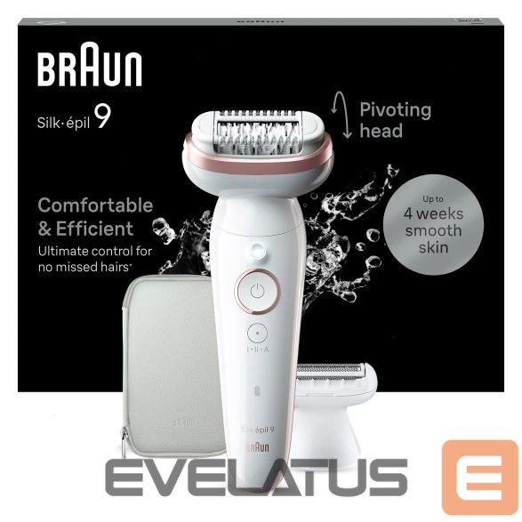 Epilator Braun Epilator | SES9-030 Silk épil 9 | Operating time (max) 50 min | Number of power levels 2 | Wet & Dry | White/Rose