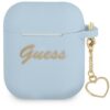 Headphone case Guess – AirPods 1/2 cover Silicone Charm Heart Collection Blue