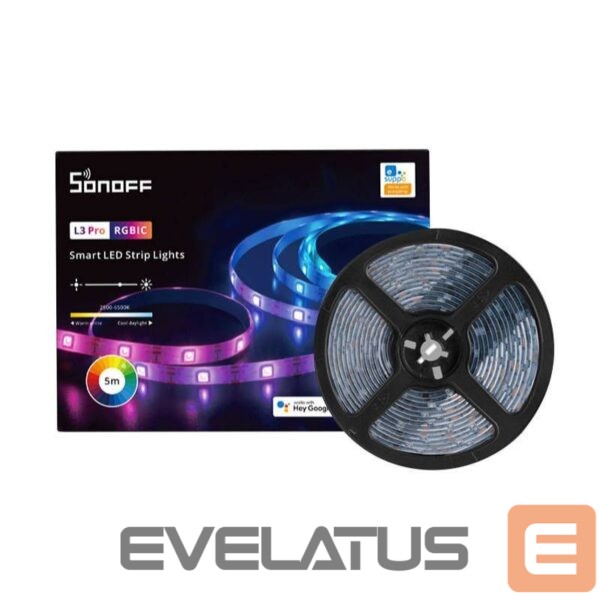 The L3 Pro ribbon uses RGBIC backlighting, which means that each LED supports IC control. This allows them to glow different colors at the same time. In contrast, standard RGB backlighting allows only one color to be displayed along the entire length of the strip. Take care of a unique atmosphere with Sonoff!