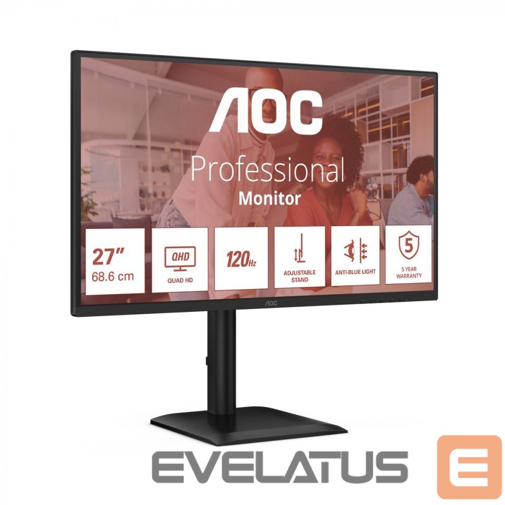 Monitor AOC Q27E4CV | 27 ” | IPS | QHD | 16:9 | 120 Hz | 4 ms | 2560 x 1440 pixels | 350 cd/m² | HDMI ports quantity 1 | Black