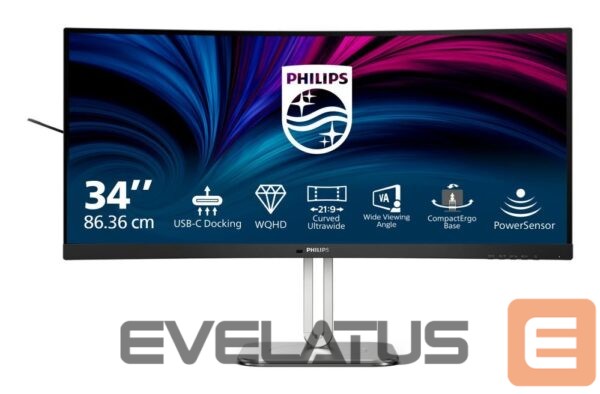 PHILIPS 34B2U5600C/00 34inch 3440×1440 120Hz VA CURVED H/A tbu MM ULTRAWIDE USB-C DOCKING DISPLAY RJ45 PD > 100 W USB HUB SPEAKERS