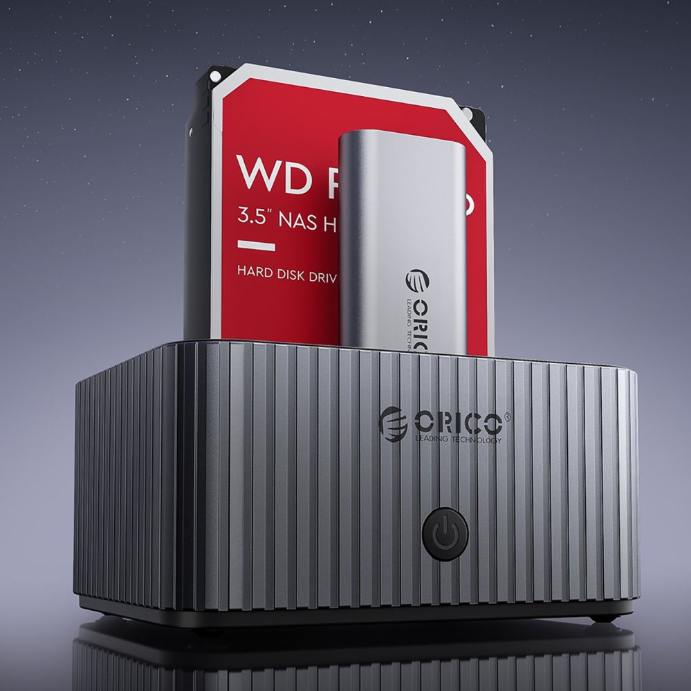 Orico IT28E-C 2-Disk Docking Station with M.2 NVME 2.5"/3.5" HDD/2.5" SSD Clone Function – Gray