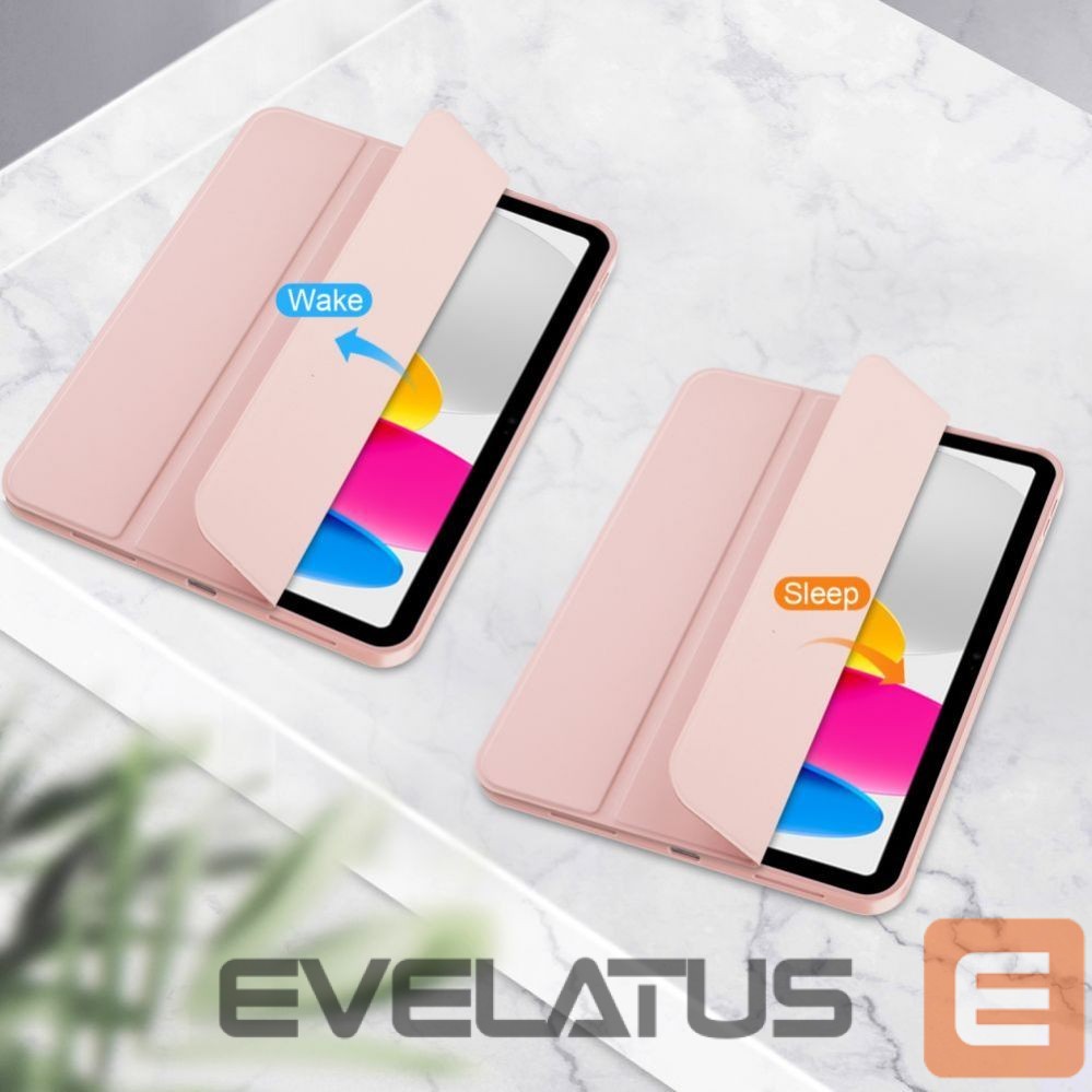 Thanks to the use of a concertina cover on the front side of the case, we gain protection for the display, and thanks to the technology of waking up and putting the device to sleep, we can ensure a slightly longer battery life. The case can also serve as a stand for more convenient use of the device.