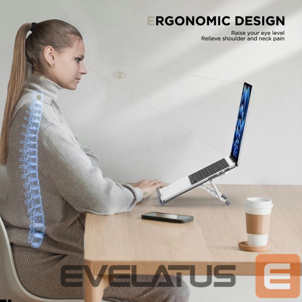 The stand offers 5-step adjustment, allowing you to adjust the laptop's position to your individual needs. This can reduce the tension in your cervical spine and improve your work comfort.