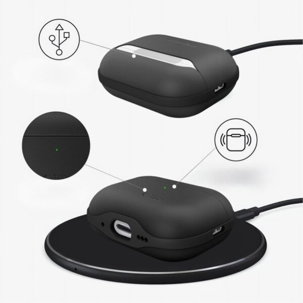 The case features a visible LED light that allows you to quickly check the charging status, and thanks to support for both wired and wireless charging, it's convenient and versatile to use. The interior of the case is carefully finished with soft microfiber, which gently envelops the headphones, protecting them from scratches and dust.