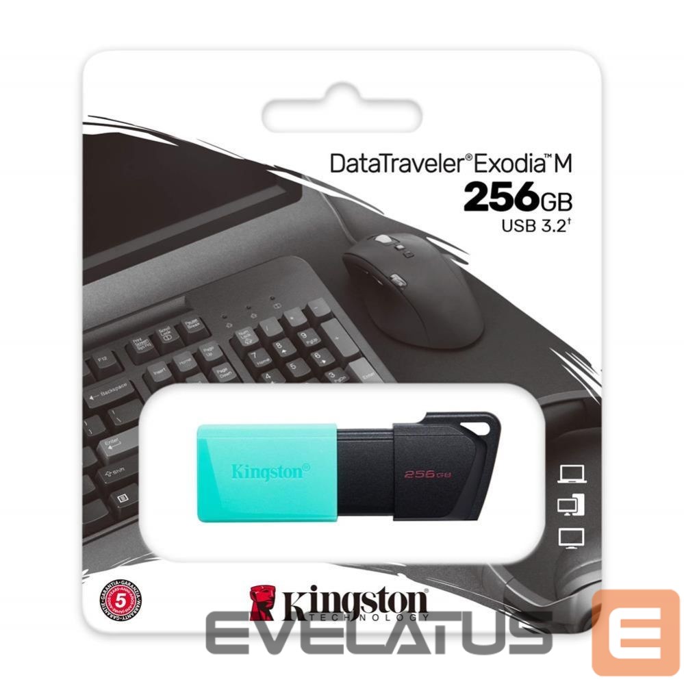 Kingston DataTraveler Exodia M is a memory that offers the performance of a USB 3.2 Gen 1 interface to provide easy access to data on laptops and desktops, monitors and other electronic equipment. DT Exodia M memory enables fast transfer and convenient storage of documents, music, movies and other data. It is available in many stylish colors to suit different capacities – up to 256 GB1. Thanks to its practical design, it is the perfect portable device for data storage at work, home and school. Additional benefits of DT Exodia M memory include a five-year warranty, free technical support and legendary Kingston reliability.
