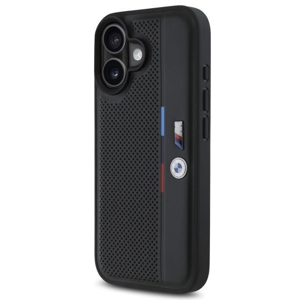 Other Phone Accessory BMW BMW M Perforated Tricolor Detail Line iPhone 16 Case – Black