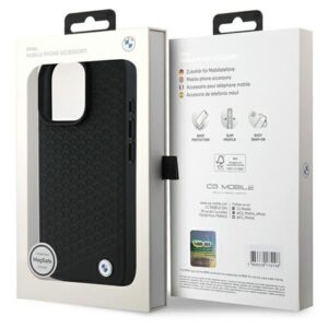 Other Phone Accessory BMW BMW Signature Leather Diamond Metal Logo MagSafe Case for iPhone 16 Pro Max – Black