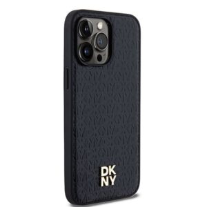 Other Phone Accessory DKNY DKNY Leather Monogram Pattern Metal Logo MagSafe Case for iPhone 14 Pro Max – Black