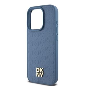 Other Phone Accessory DKNY DKNY Leather Monogram Pattern Metal Logo MagSafe Case for iPhone 15 Pro – Blue