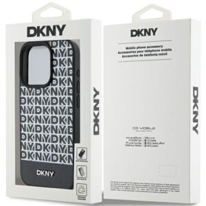 Other Phone Accessory DKNY DKNY Leather Printed Pattern Metal Logo MagSafe Case for iPhone 15 Pro – Black