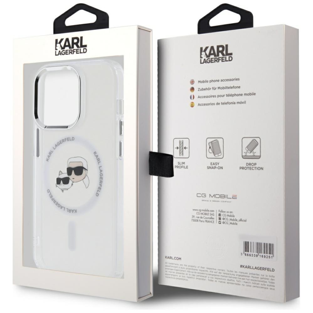 Other Phone Accessory Karl Lagerfeld Karl Lagerfeld IML Metal Karl & Choupette Head MagSafe iPhone 14 Pro Case – White