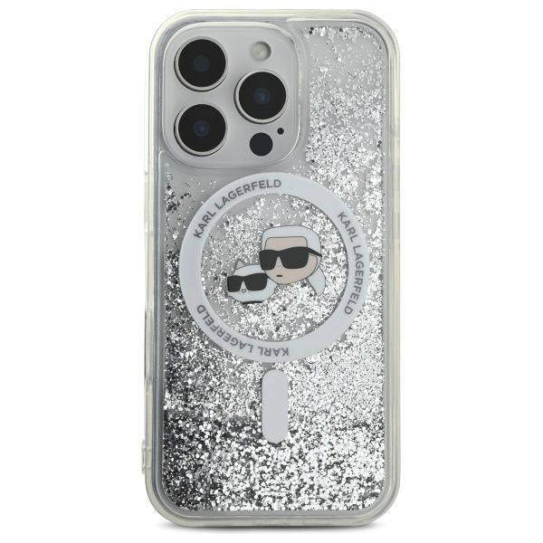 Other Phone Accessory Karl Lagerfeld Karl Lagerfeld Liquid Glitter Karl & Choupette Head Magsafe Case for iPhone 16 Pro Max – Clear