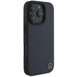 Other Phone Accessory Mercedes-Benz Mercedes MB Wood Imitation Leather MagSafe Case for iPhone 16 Pro Max – Navy Blue