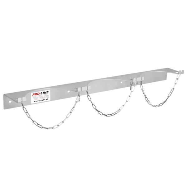 The PRO-LINE wall holder for 3 gas cylinders is ideal for safe storage of cylinders in a vertical position. The cylinder mounting holder is equipped with a chain for security . Easy wall mounting with screws or screws.