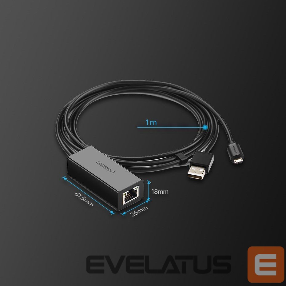 Other Phone Accessory Ugreen Ugreen 30985 external network card for Chromecast with micro USB / USB-A connectors 100Mb/s 1m – black