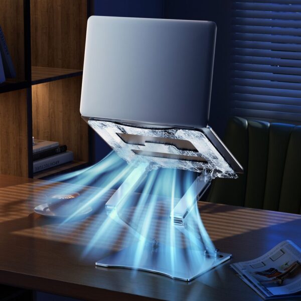 The holes on the back of the stand allow for effective airflow, which significantly improves the cooling of the device and prevents the laptop from overheating during operation.