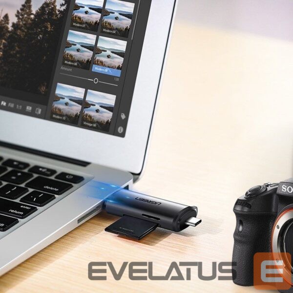 The Ugreen CM185 50706 card reader is equipped with two connectors: USB-A and USB-C, which makes it compatible with a wide range of devices. You can connect it to a desktop computer, PlayStation console, Xbox or TV using the USB-A connector, as well as to a laptop, tablet or smartphone thanks to the USB-C connector. This versatility allows you to use the reader in a variety of situations.